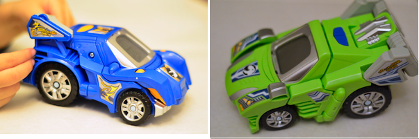 My son loves playing with his Dinos, and because it’s easy to switch between the vehicle form and the dinosaur, he doesn’t become frustrated. Instead, I’ve watched him play for hours, incorporating his new toys into his imaginary world, zooming the cars around the room and stomping his dinosaurs around. Seriously cute.