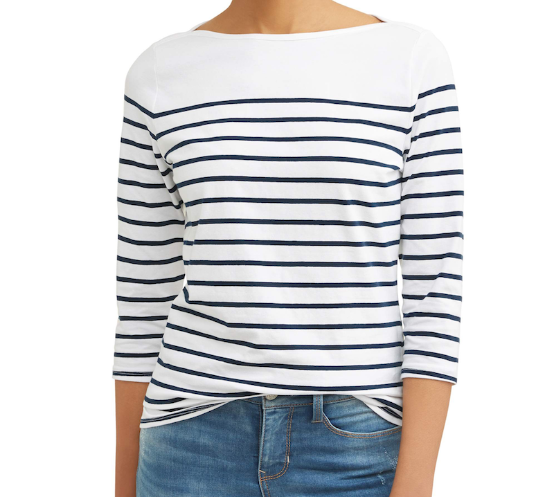 I was perusing Walmart’s We Dress America spring line on their site, and fell in love with a few items that are so pretty and fresh and feminine… perfect for spring time! They remind me of how I used to dress before I started to resort to all black and dark colors and simply loved looking pretty and trendy as I went about my day. I love this striped, boat neck top from Time and Tru with 3/4 sleeves. It’s floaty and flattering and very stylish, something that would go with a pencil skirt, jeans, a blazer… it’s so versatile!